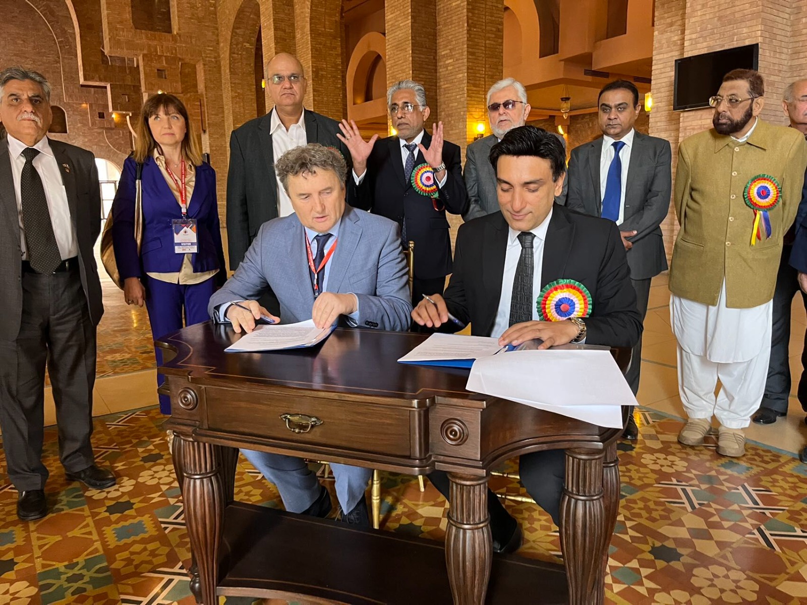 The document was signed by Roberto Pellegrini, Chairman of Riva del Garda Fierecongressi and Mansoor Ehsan Sheikh, Director of the PFMA, in the presence of Zubair Motiwala, Chief Executive of the Trade Development Authority of Pakistan and GianPaola Pedretti, Exhibition Manager of Expo Riva Schuh & Gardabags.